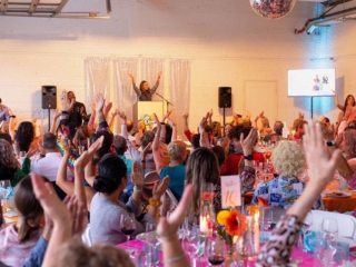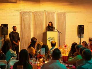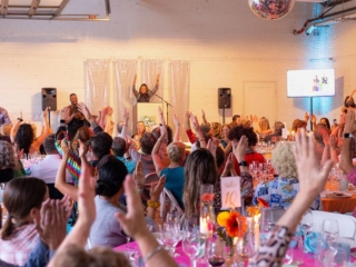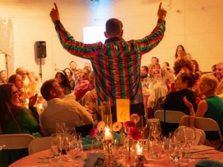 The disco beats were pumping from the Community Arts Workshop as guests arrived in sequins, bell-bottoms, and wild colors for Rooted Santa Barbara County’s first Annual Kale Disco on April 5, 2025 in Santa Barbara. Hosted by celebrity guest Duane Henry, the gala evening featured plant-forward dining from Palma Catering, an exciting live auction and a delicious dessert auction with auctioneer Tina Ballue, and plenty of sparkling fun!